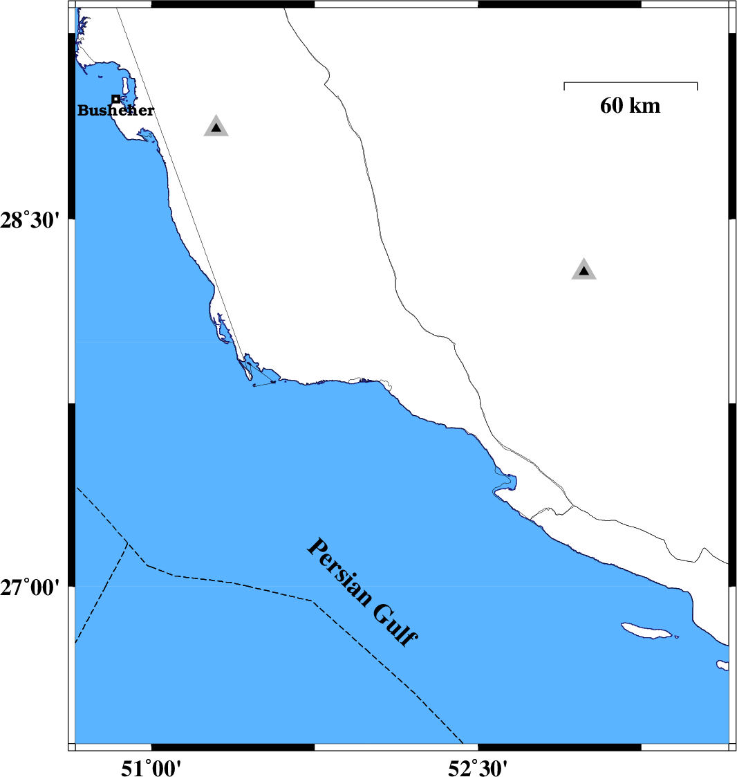 | 2021/05/16 | 17:32:49.9 | 22:02:49.9 | 27.853 | 52.151 | 34 | ML4.6 | Bushehr Province, 9 km of Bandar-e kangan | ||