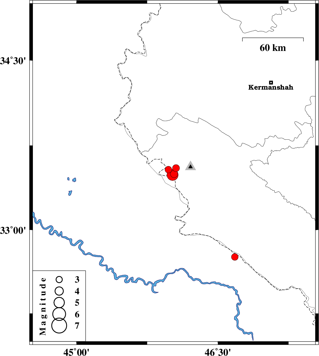| 2021/06/06 | 05:55:43.9 | 10:25:43.9 | 33.536 | 45.975 | 12 | ML3.3 | Ilam Province, 44 km South-West of Ilam | ||