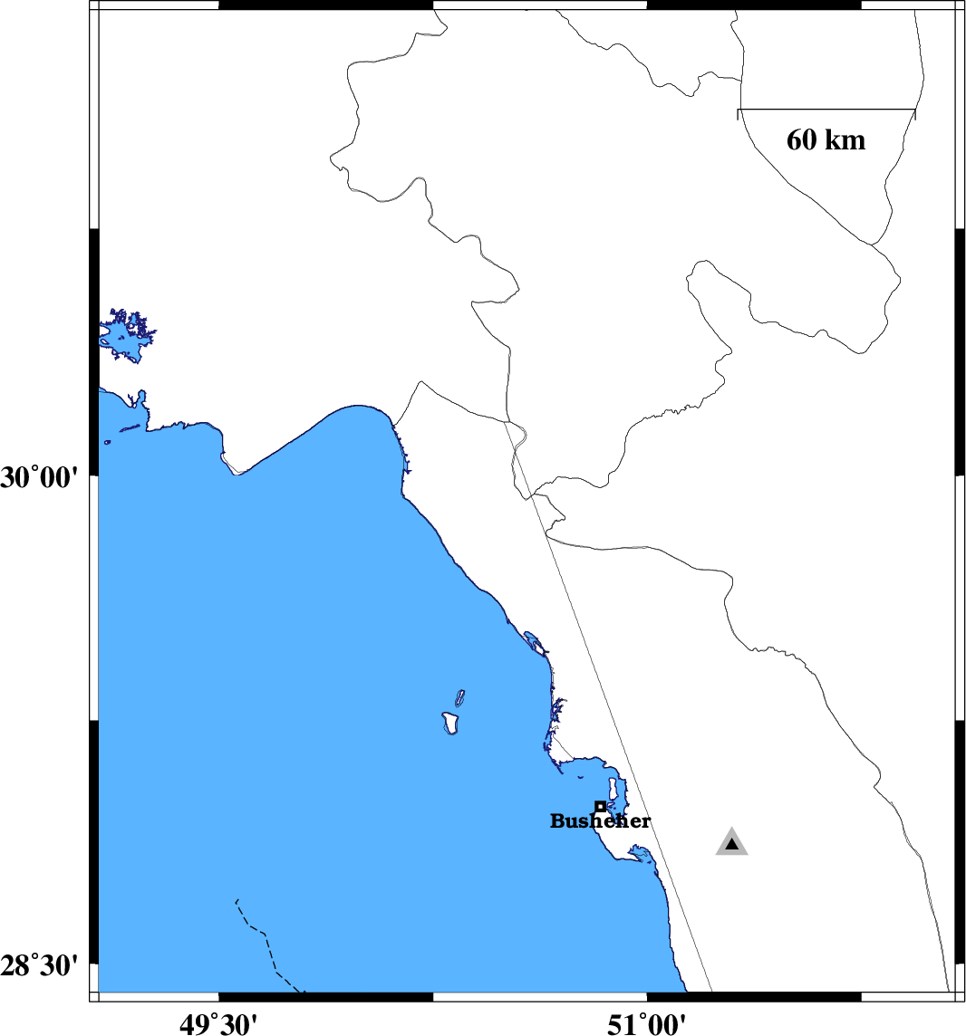 | 2021/06/13 | 02:27:27.0 | 06:57:27.0 | 29.82 | 50.575 | 32 | ML3.8 | Bushehr Province, 28 km North of Bandar-e genaveh | ||