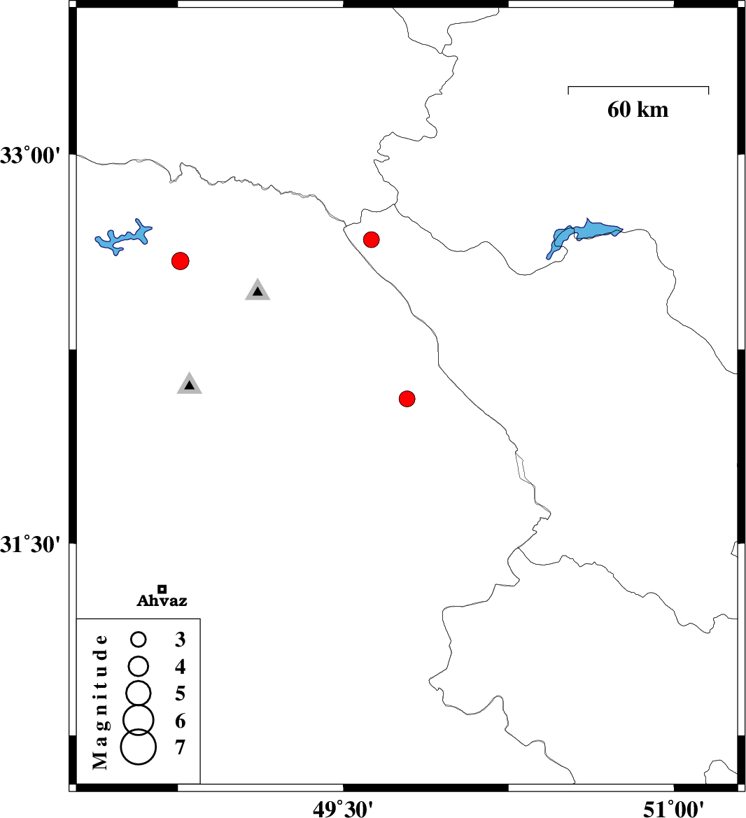 | 2021/05/31 | 04:41:27.4 | 09:11:27.4 | 32.59 | 48.761 | 12 | ML3.5 | Khoozestan Province, 41 km North-East of Andimeshk |