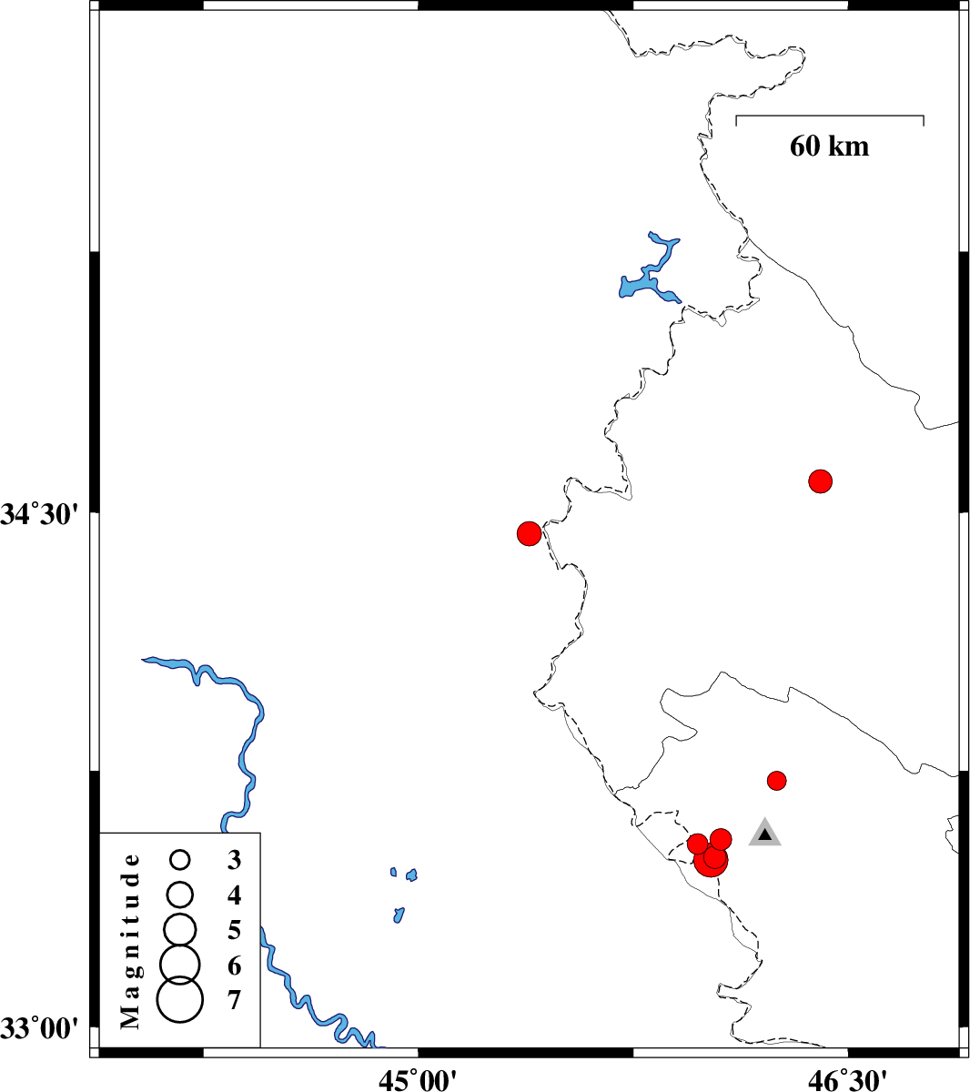 | 2021/06/06 | 04:54:23.1 | 09:24:23.1 | 33.49 | 46.02 | 10 | ML5.3 | Ilam Province, 43 km North-West of Mehran |