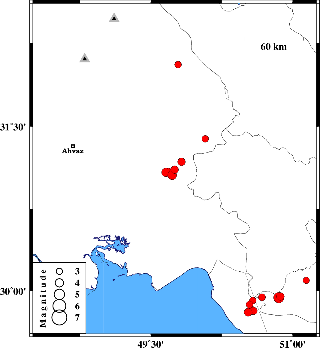 | 2021/07/03 | 06:33:52.7 | 11:03:52.7 | 31.084 | 49.688 | 12 | ML4 | Khoozestan Province, 23 km South of Ramhormoz | ||