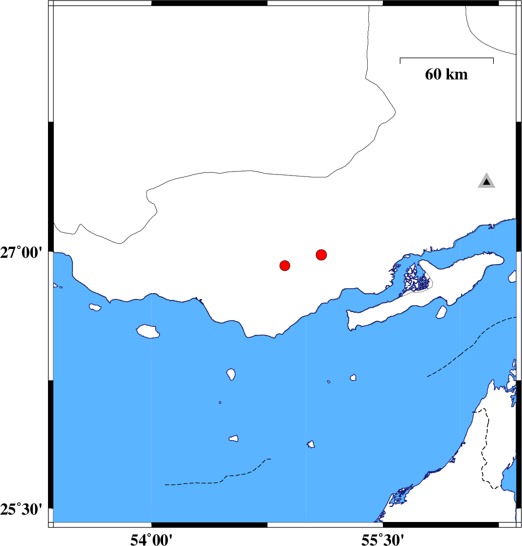 2021/07/12 | 17:45:29.2 | 22:15:29.2 | 26.981 | 55.099 | 12 | ML3.1 | Hormozgan Province, 56 km North-East of Bandar-e lengeh |