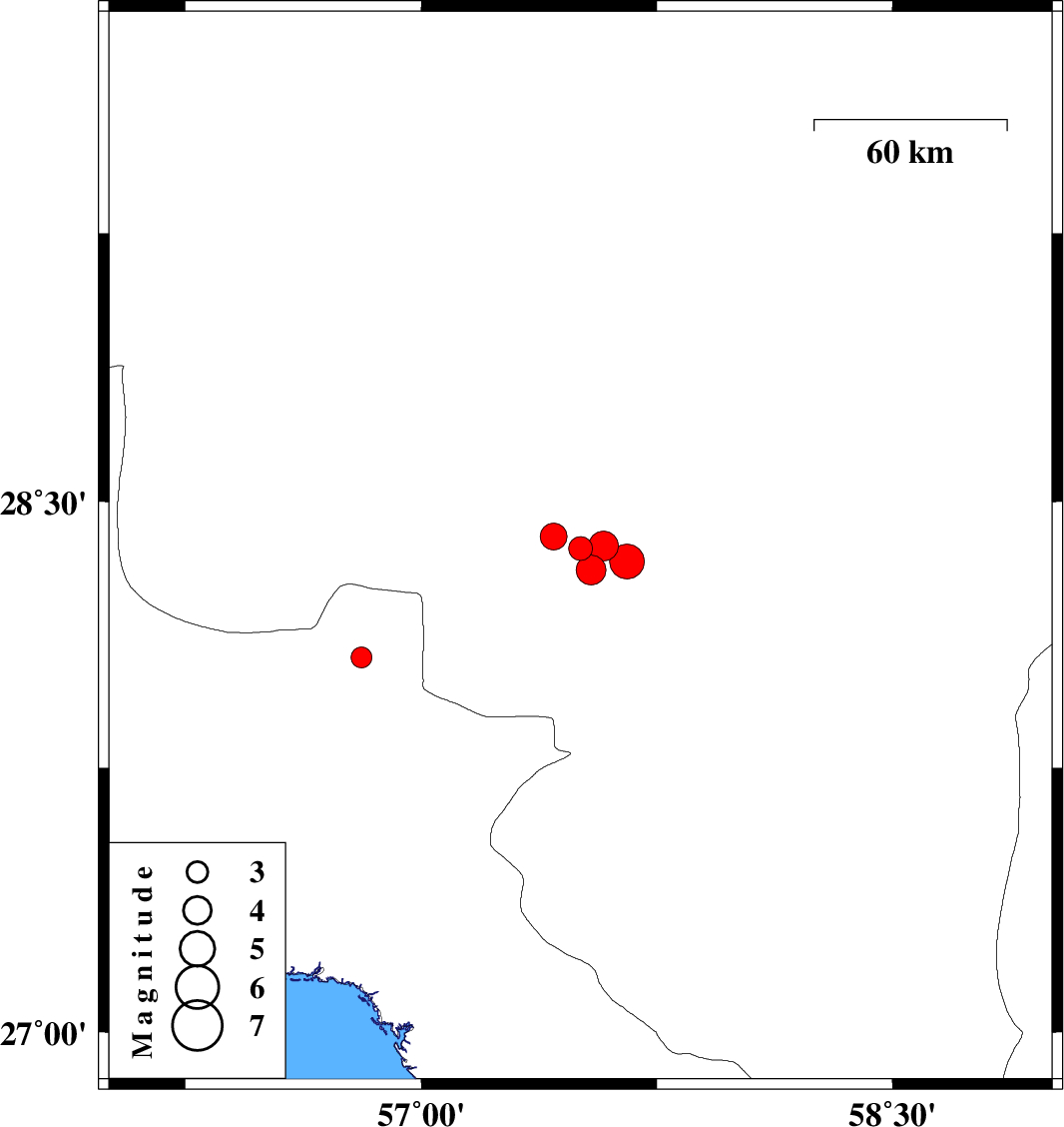 2021/08/13 | 17:27:31.2 | 21:57:31.2 | 28.308 | 57.54 | 10 | ML4.2 | Kerman Province, 43 km North-West of Kahnuj | ||