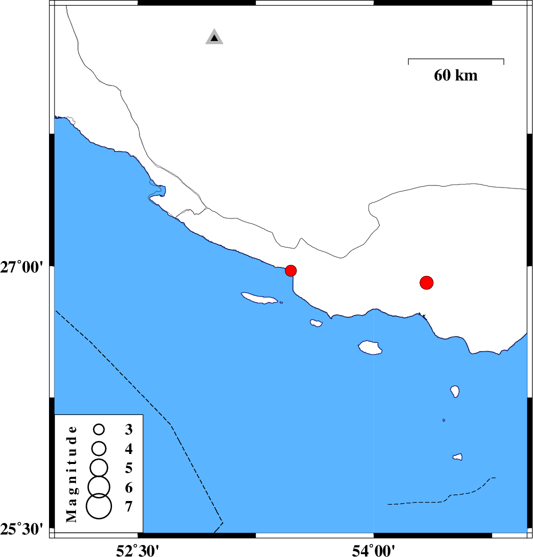 | 2021/08/23 | 22:49:12.2 | 03:19:12.2 | 26.973 | 53.472 | 12 | ML3.3 | Hormozgan Province, 50 km South-East of Lamerd | ||
