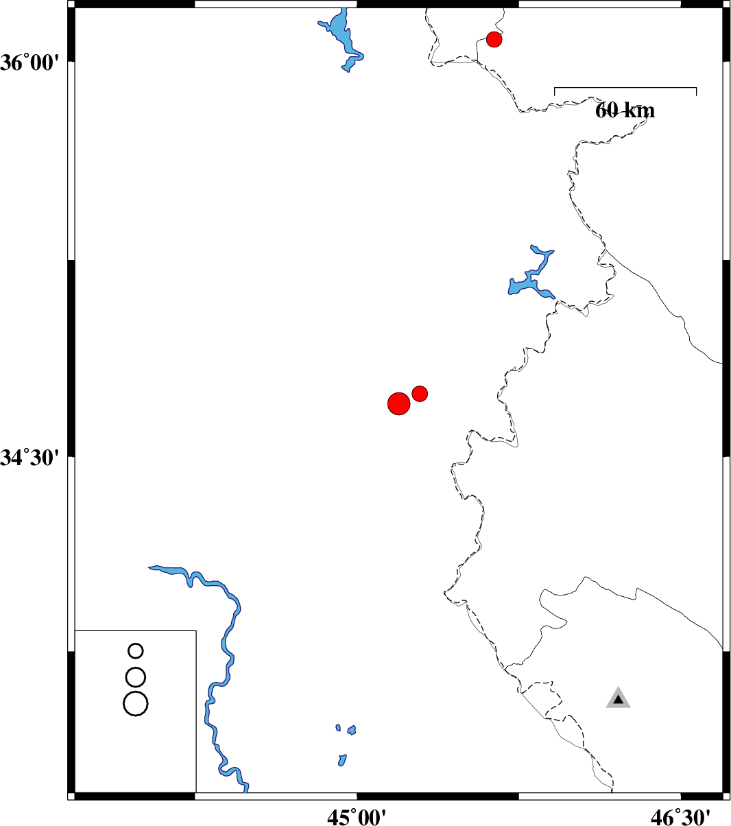 2021/09/08 18:45:52.4 23:15:52.4 34.7445.29119 ML3.3 Iraq, 37 km North-West of Qasr-E-Shirin