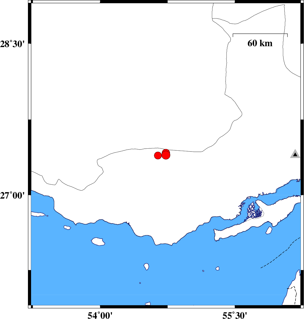 | 2021/09/11 | 21:20:01.8 | 01:50:01.8 | 27.394 | 54.643 | 22 | ML3.6 | Hormozgan Province, 35 km North-East of Bastak | ||