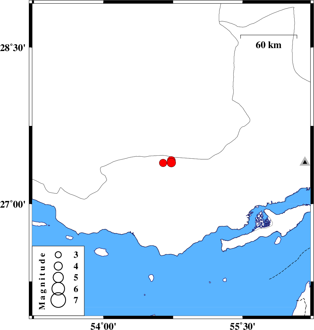 | 2021/09/11 | 21:20:01.8 | 01:50:01.8 | 27.394 | 54.643 | 22 | ML3.6 | Hormozgan Province, 35 km North-East of Bastak | ||