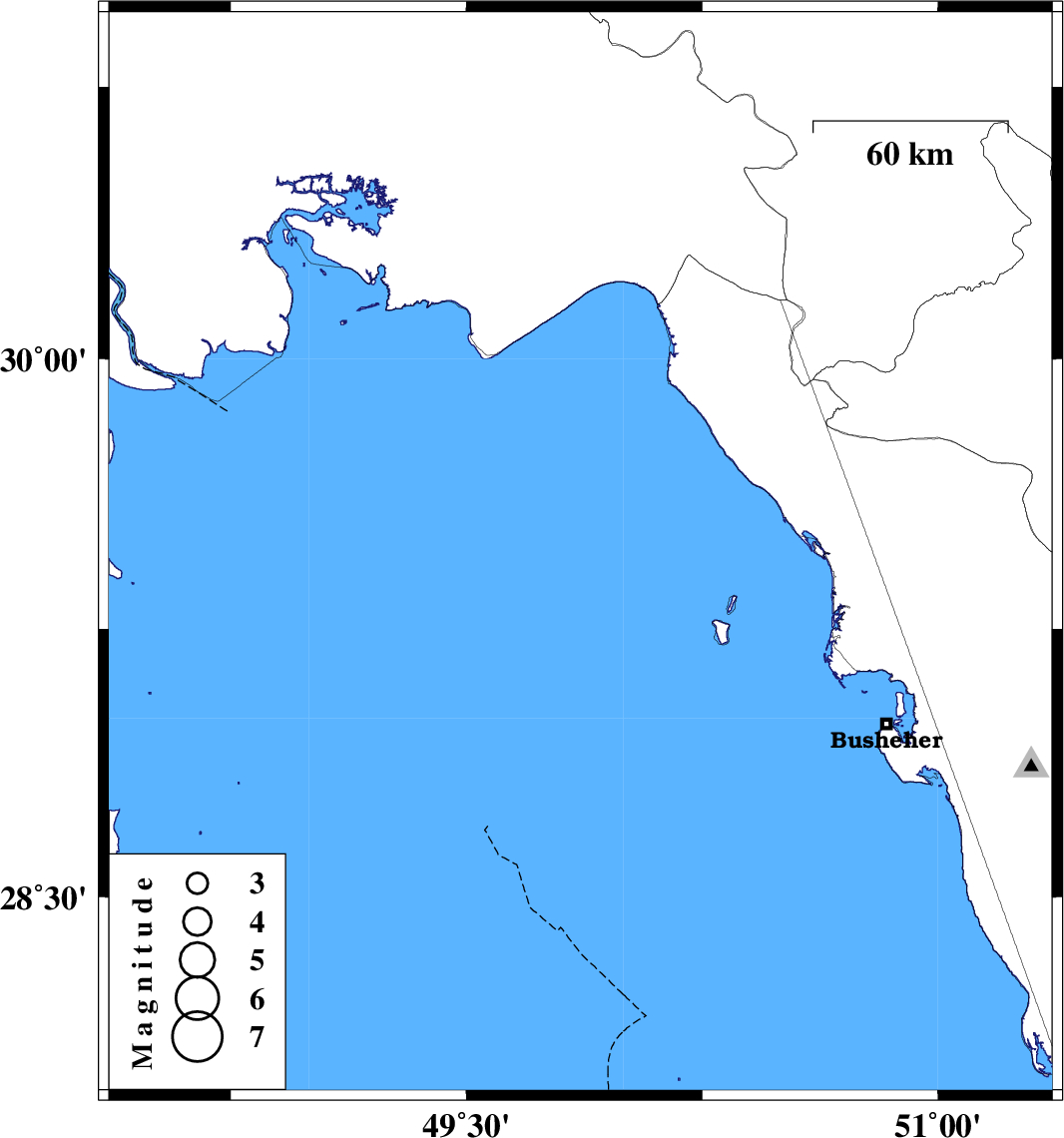 | 2021/09/14 | 04:48:06.7 | 09:18:06.7 | 29.457 | 49.863 | 12 | ML3.7 | Persian Gulf, 64 km South-West of Bandar-e genaveh |