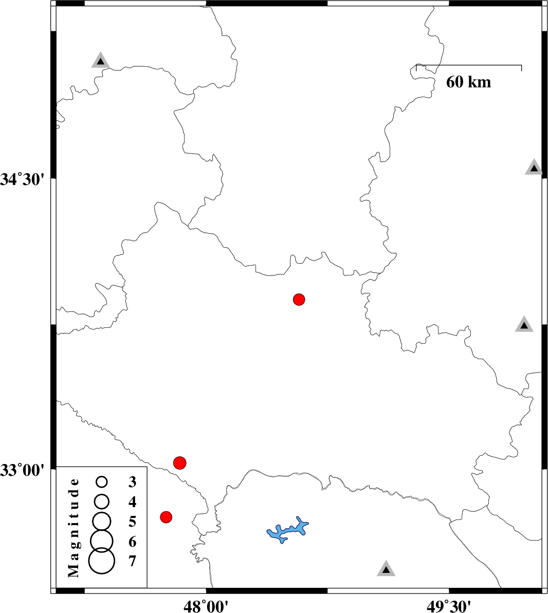 | 2021/09/02 | 22:20:54.8 | 02:50:54.8 | 33.031 | 47.836 | 10 | ML3.5 | Lorestan Province, 18 km South-East of Pol-e dokhtar |