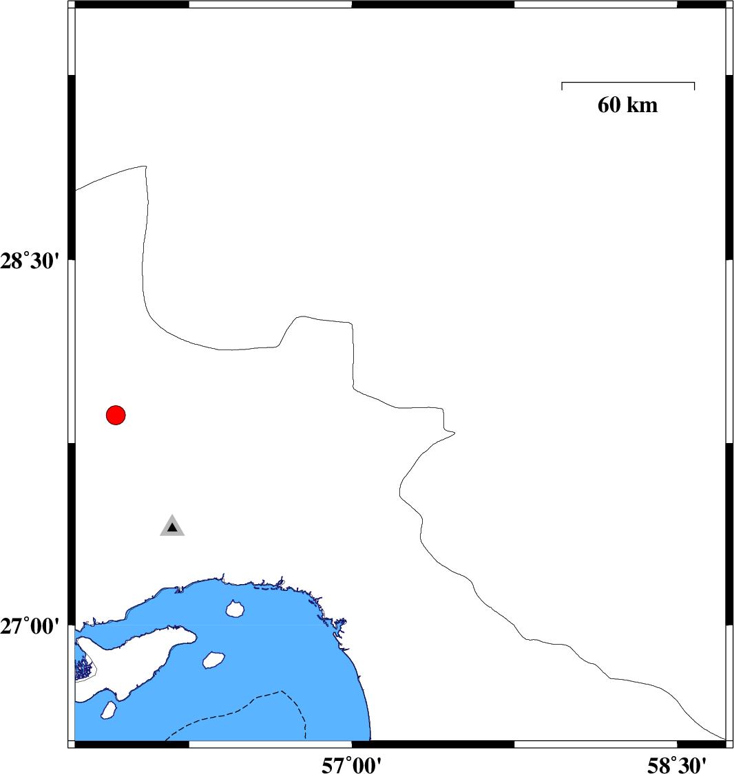 | 2021/09/21 | 08:07:52.6 | 12:37:52.6 | 27.882 | 57.767 | 12 | ML3.9 | Kerman Province, 10 km of Kahnuj |