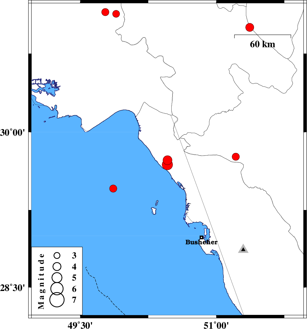 | 2021/10/01 | 02:33:19.4 | 06:03:19.4 | 29.73 | 50.462 | 12 | ML4.5 | Bushehr Province, 18 km North of Bandar-e genaveh | ||
