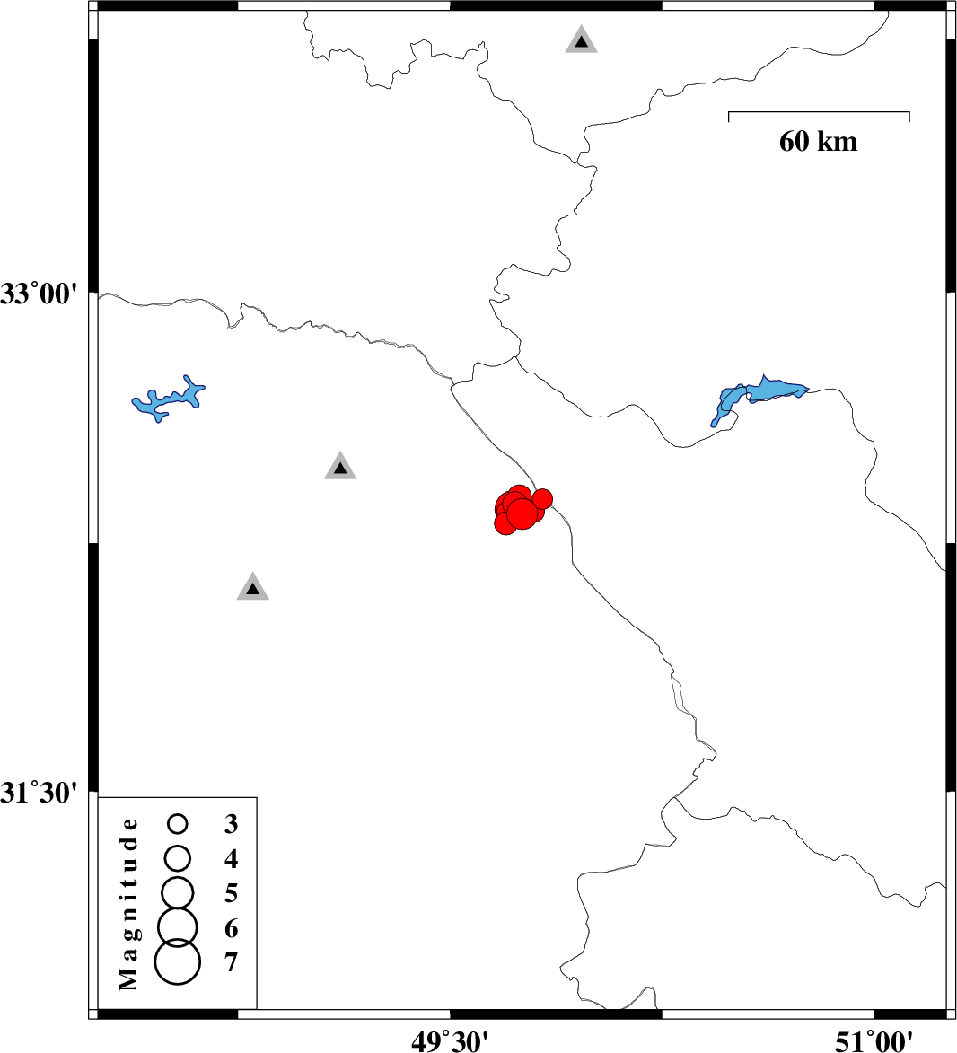 | 2021/10/01 | 20:17:42.6 | 23:47:42.6 | 32.345 | 49.794 | 12 | ML3.5 | Khoozestan Province, 33 km South-West of Chelgard |