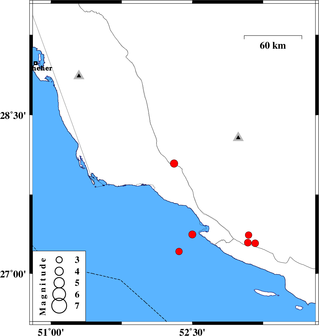 2021/09/19 | 22:11:08.1 | 02:41:08.1 | 27.372 | 52.5 | 12 | ML3.5 | Persian Gulf, 43 km South-West of Mehr |