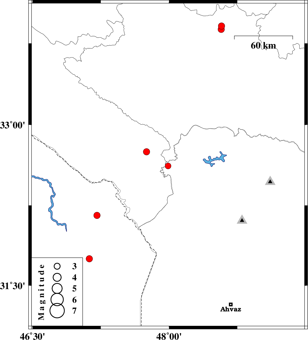 2021/10/01 | 01:55:39.2 | 05:25:39.2 | 32.157 | 47.208 | 12 | ML:3.3 | Iraq, 60 km South of Dehloran | ||