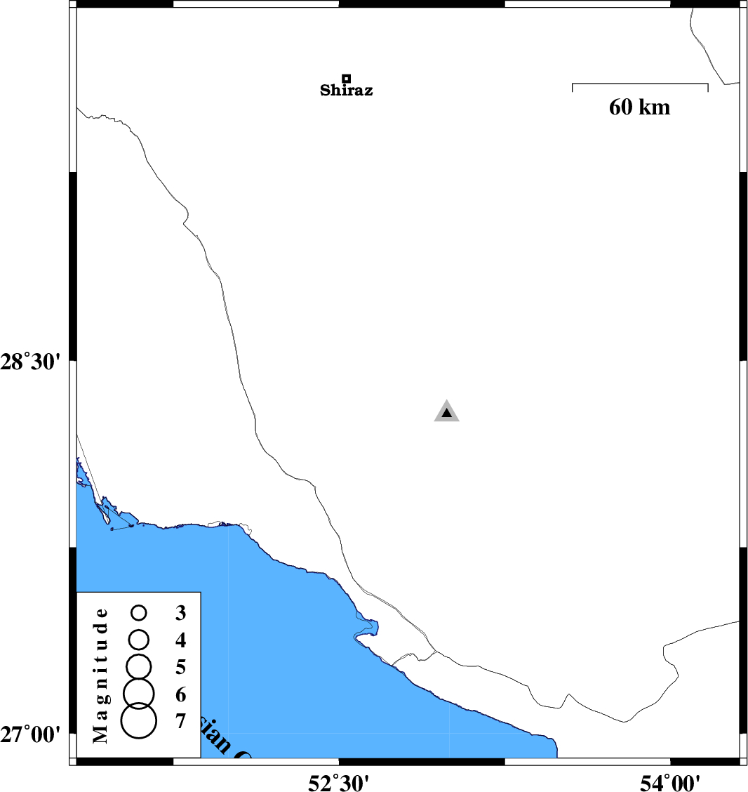 | 2021/10/30 | 19:33:18.2 | 23:03:18.2 | 28.4 | 52.812 | 16 | ML3.3 | Fars Province, 23 km -West of Qir va Karzin |