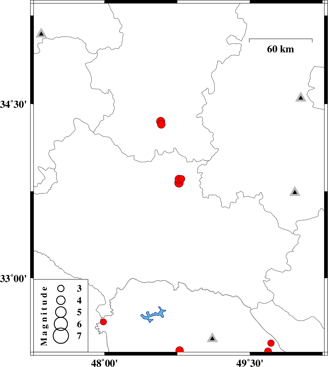 | 2021/11/11 | 08:24:28.4 | 11:54:28.4 | 33.822 | 48.768 | 12 | ML4.1 | Lorestan Province, 8 km of Borujerd | ||