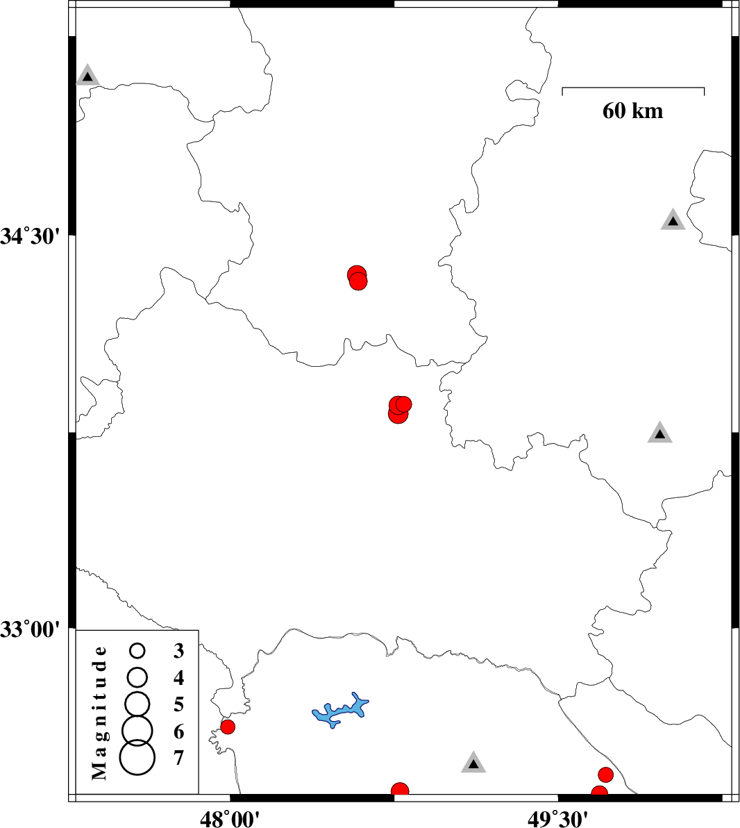 | 2021/11/11 | 08:24:28.4 | 11:54:28.4 | 33.822 | 48.768 | 12 | ML4.1 | Lorestan Province, 8 km of Borujerd | ||