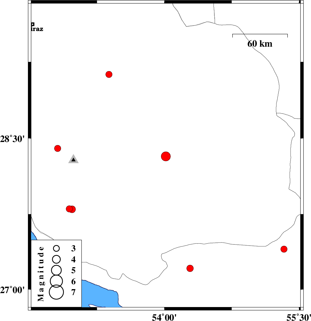 | 2021/11/13 | 20:52:19.8 | 00:22:19.8 | 28.322 | 54.016 | 12 | ML4.6 | Fars Province, 49 km South-East of Jahrom | ||