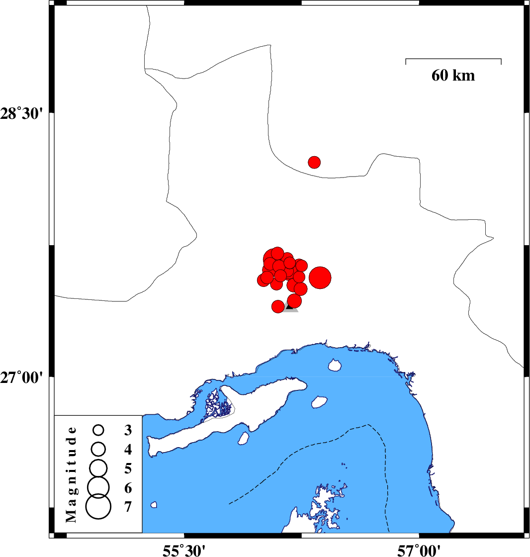 2021/11/14 13:05:53.8 16:35:53.8 27.40156.0999 ML3.7 Hormozgan Province, 30 km North-West of Bandar-e abbas