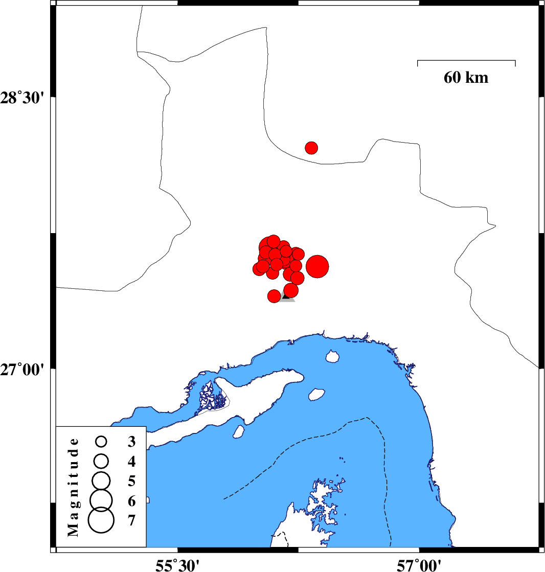 2021/11/14 14:24:16.6 17:54:16.6 27.50156.24310 ML3.8 Hormozgan Province, 35 km North of Bandar-e abbas