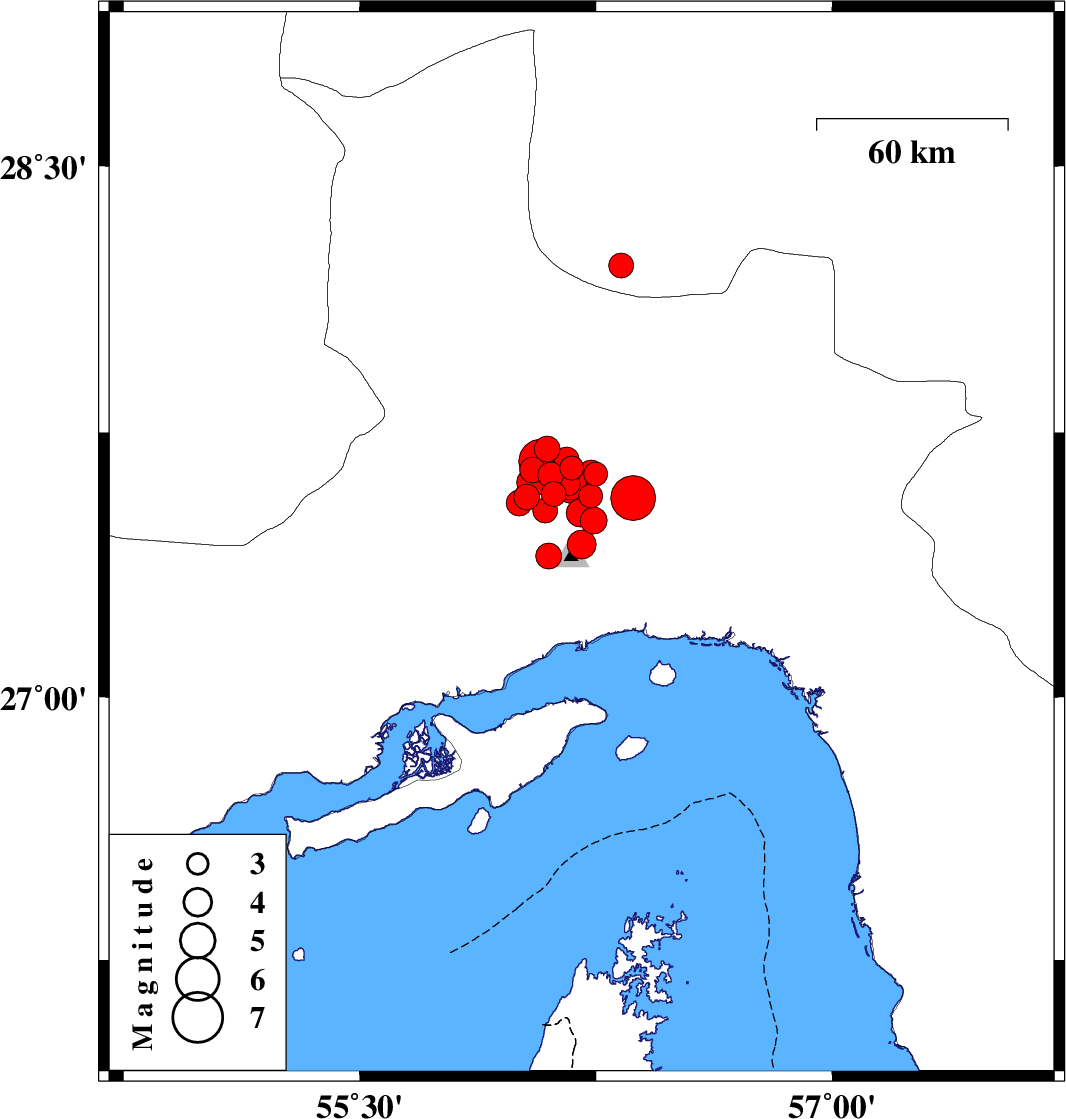 2021/11/14 14:24:16.6 17:54:16.6 27.50156.24310 ML3.8 Hormozgan Province, 35 km North of Bandar-e abbas