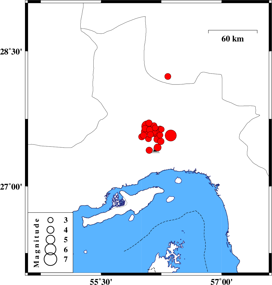 2021/11/14 12:08:36.9 15:38:36.9 27.56556.36715 ML6.4 Hormozgan Province, 43 km North of Bandar-e abbas