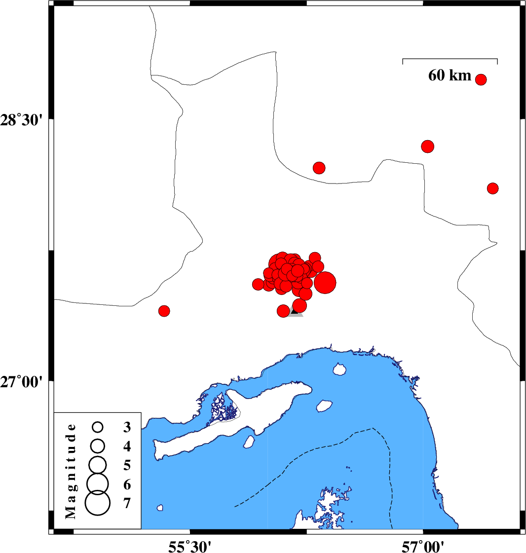 | 2021/11/15 | 01:41:27.3 | 05:11:27.3 | 27.555 | 55.938 | 12 | ML3.4 | Hormozgan Province, 53 km North-West of Bandar-e abbas | ||