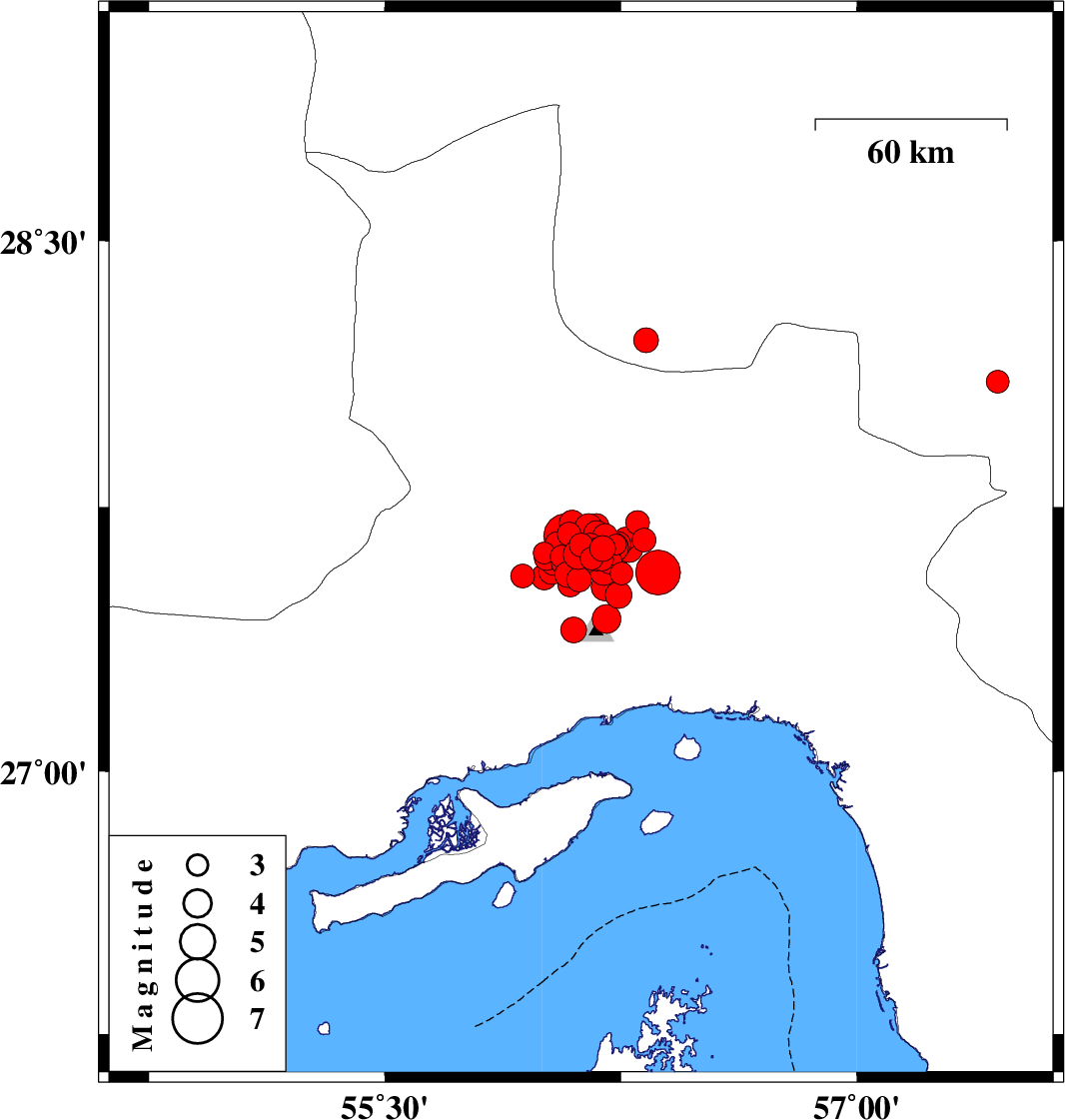 2021/11/17 19:29:37.2 22:59:37.2 27.55956.08112 ML3.7 Hormozgan Province, 46 km North-West of Bandar-e abbas