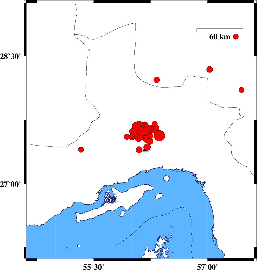| 2021/11/15 | 01:41:27.3 | 05:11:27.3 | 27.555 | 55.938 | 12 | ML3.4 | Hormozgan Province, 53 km North-West of Bandar-e abbas | ||