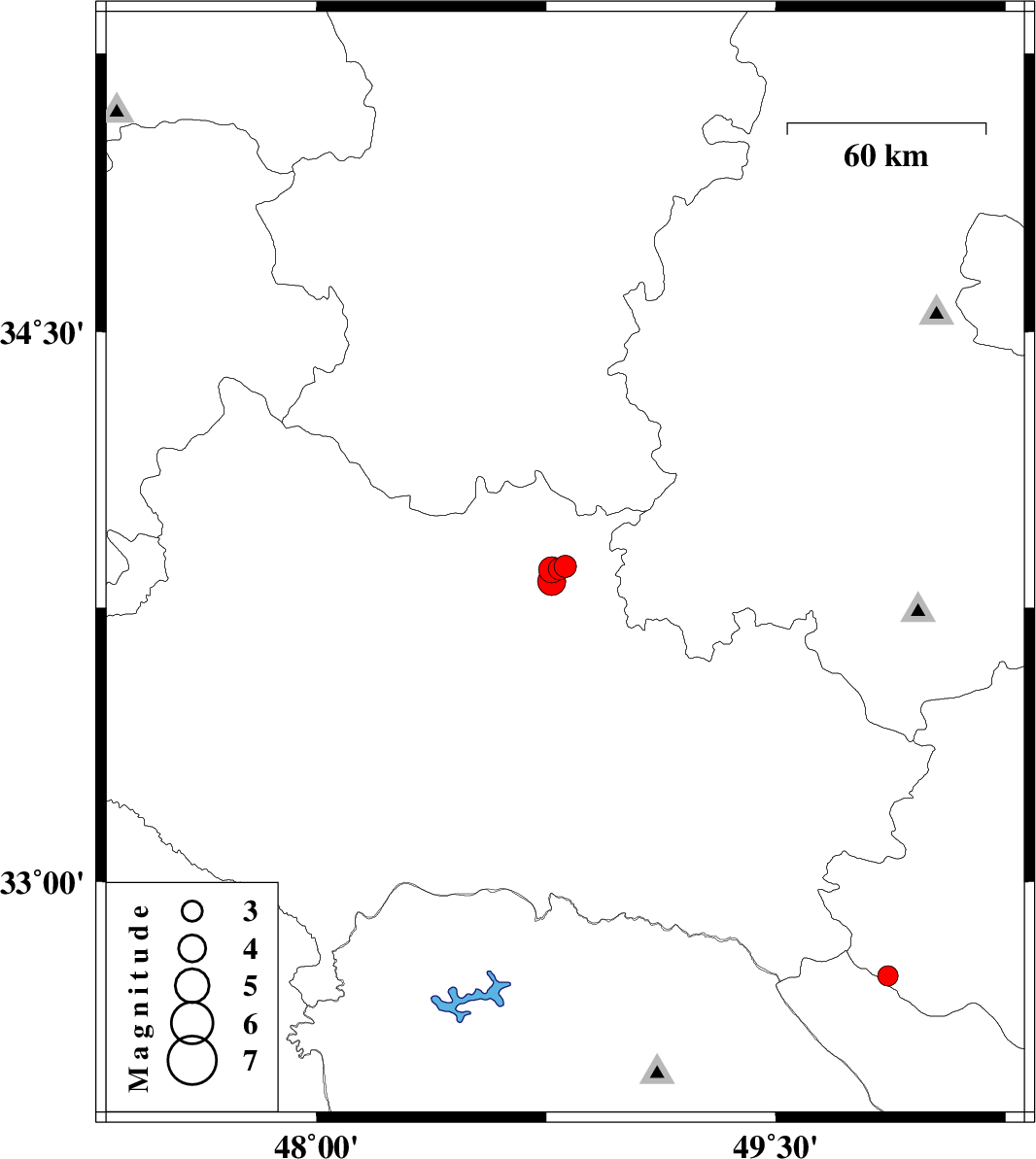 | 2021/11/11 | 08:24:28.4 | 11:54:28.4 | 33.822 | 48.768 | 12 | ML4.1 | Lorestan Province, 8 km of Borujerd |