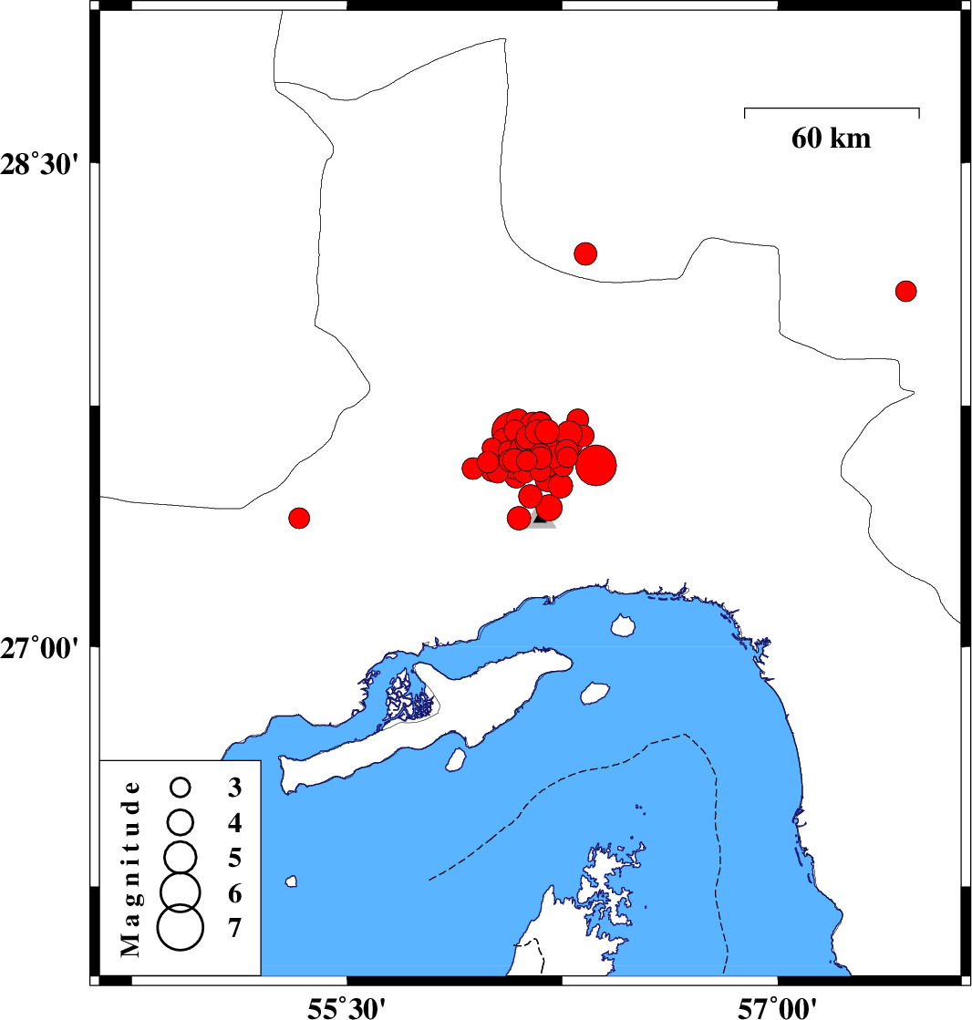 | 2021/11/16 | 05:12:13.6 | 08:42:13.6 | 27.655 | 56.115 | 10 | ML4.1 | Hormozgan Province, 55 km North-West of Bandar-e abbas | ||