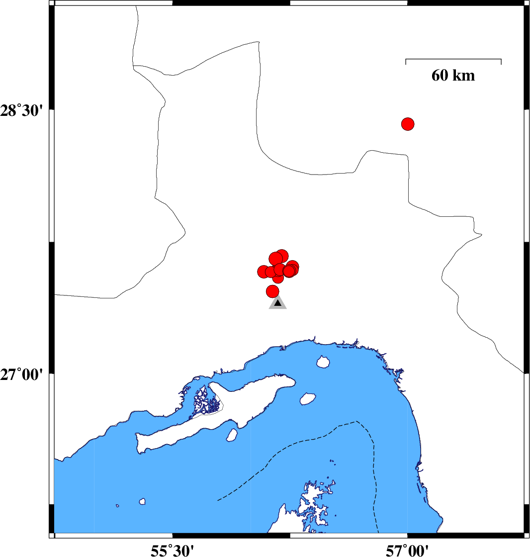 | 2021/11/30 | 22:44:37.2 | 02:14:37.2 | 27.583 | 56.243 | 12 | ML3.3 | Hormozgan Province, 45 km North of Bandar-e abbas | ||