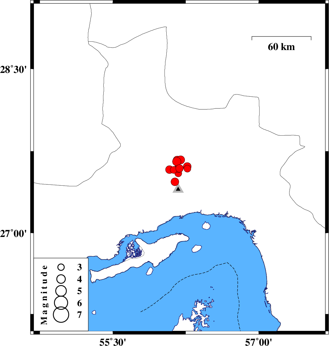 | 2021/11/28 | 17:14:43.2 | 20:44:43.2 | 27.654 | 56.158 | 12 | ML4 | Hormozgan Province, 54 km North-West of Bandar-e abbas | ||