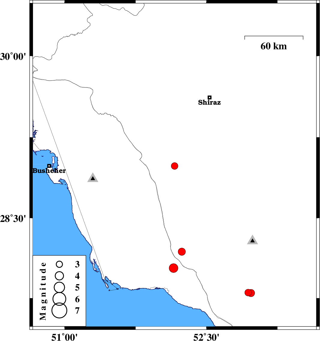 | 2021/10/31 | 07:49:13.3 | 11:19:13.3 | 27.798 | 52.972 | 10 | ML3.5 | Fars Province, 29 km North of Mehr |