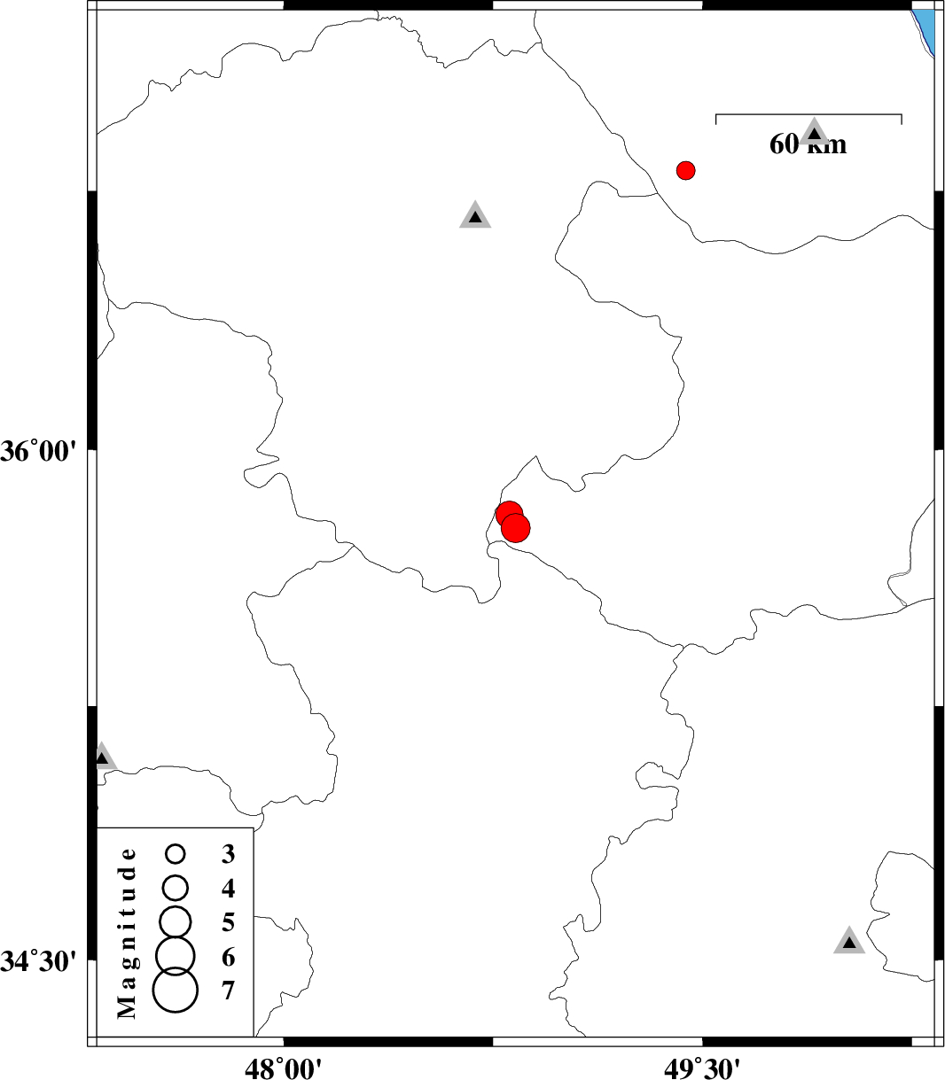 2021/11/30 | 15:04:53.7 | 18:34:53.7 | 35.81 | 48.808 | 10 | ML4.4 | Ghazvin Province, 39 km South-East of Qeydar | ||