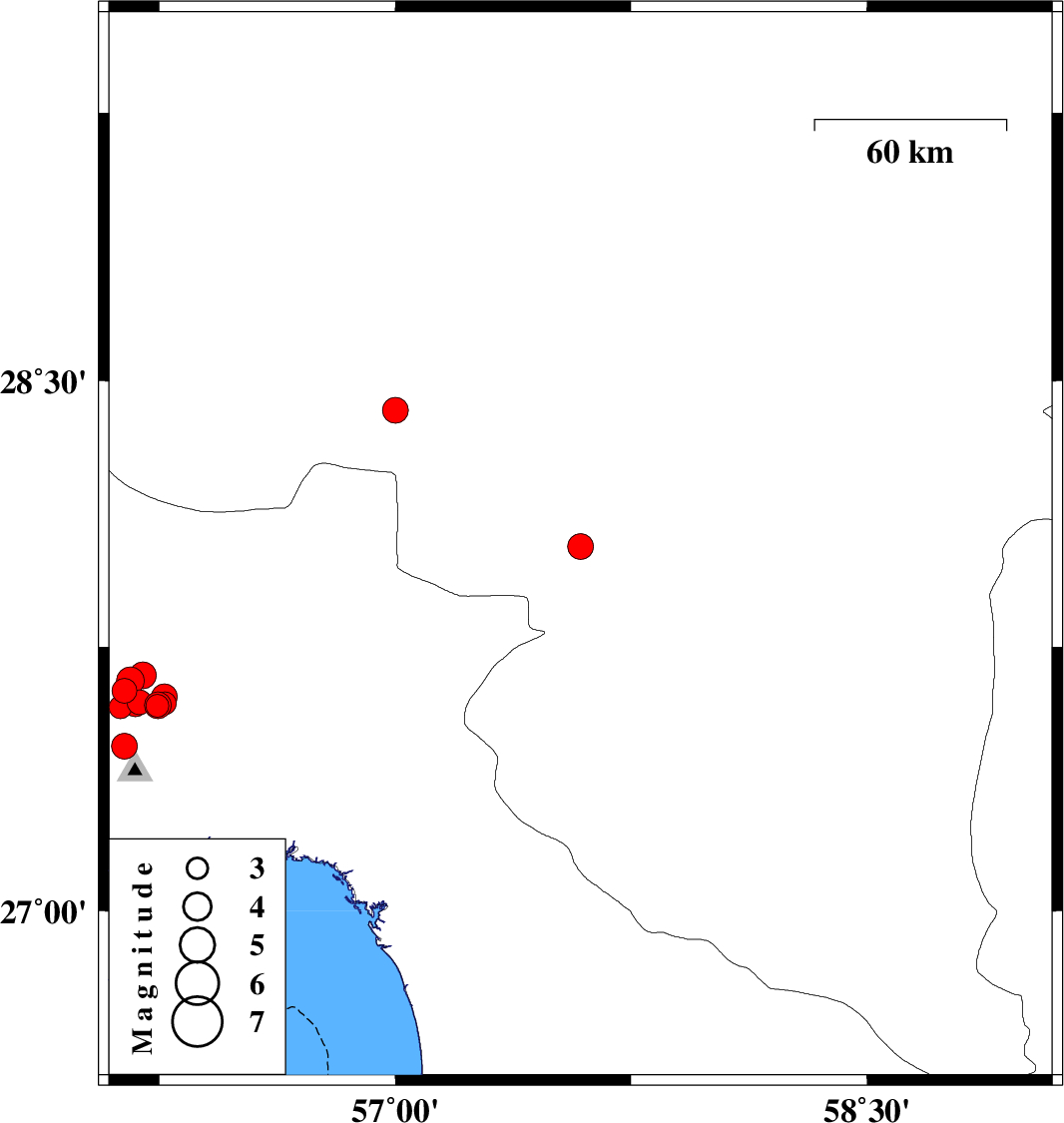 | 2021/11/25 | 11:02:56.6 | 14:32:56.6 | 27.609 | 56.265 | 12 | ML3.7 | Hormozgan Province, 47 km North of Bandar-e abbas |