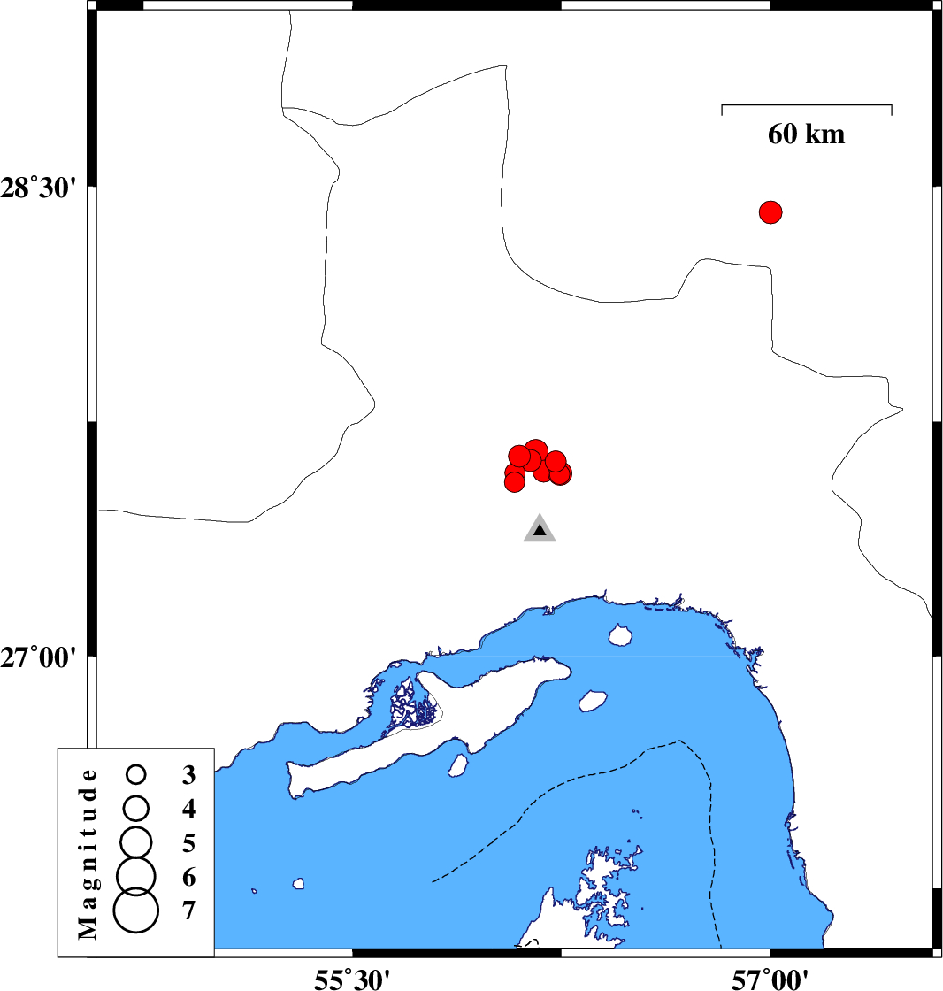 | 2021/11/30 | 22:44:37.2 | 02:14:37.2 | 27.583 | 56.243 | 12 | ML3.3 | Hormozgan Province, 45 km North of Bandar-e abbas | ||