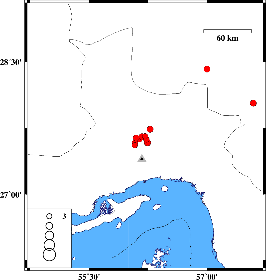 | 2021/11/30 | 22:44:37.2 | 02:14:37.2 | 27.583 | 56.243 | 12 | ML3.3 | Hormozgan Province, 45 km North of Bandar-e abbas | ||