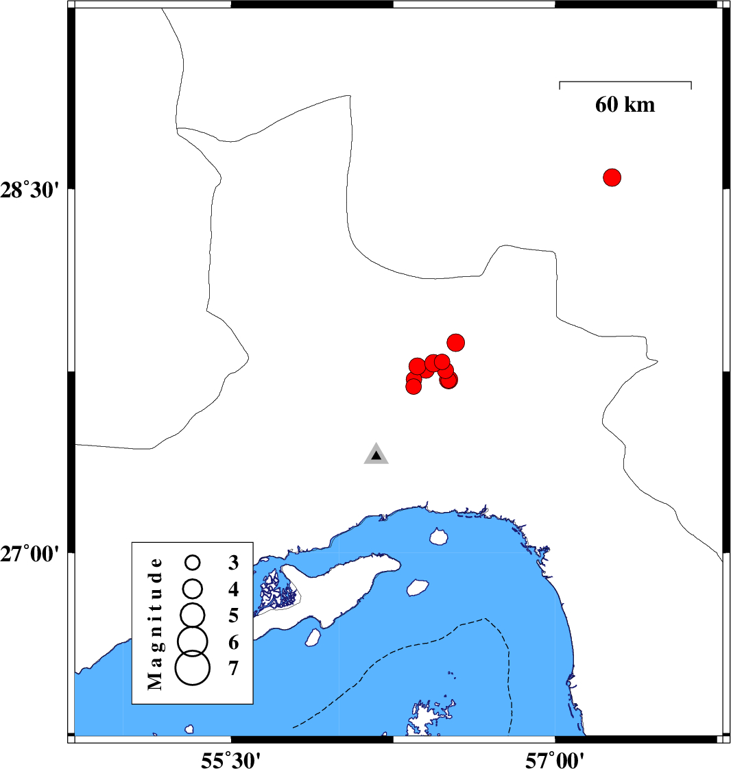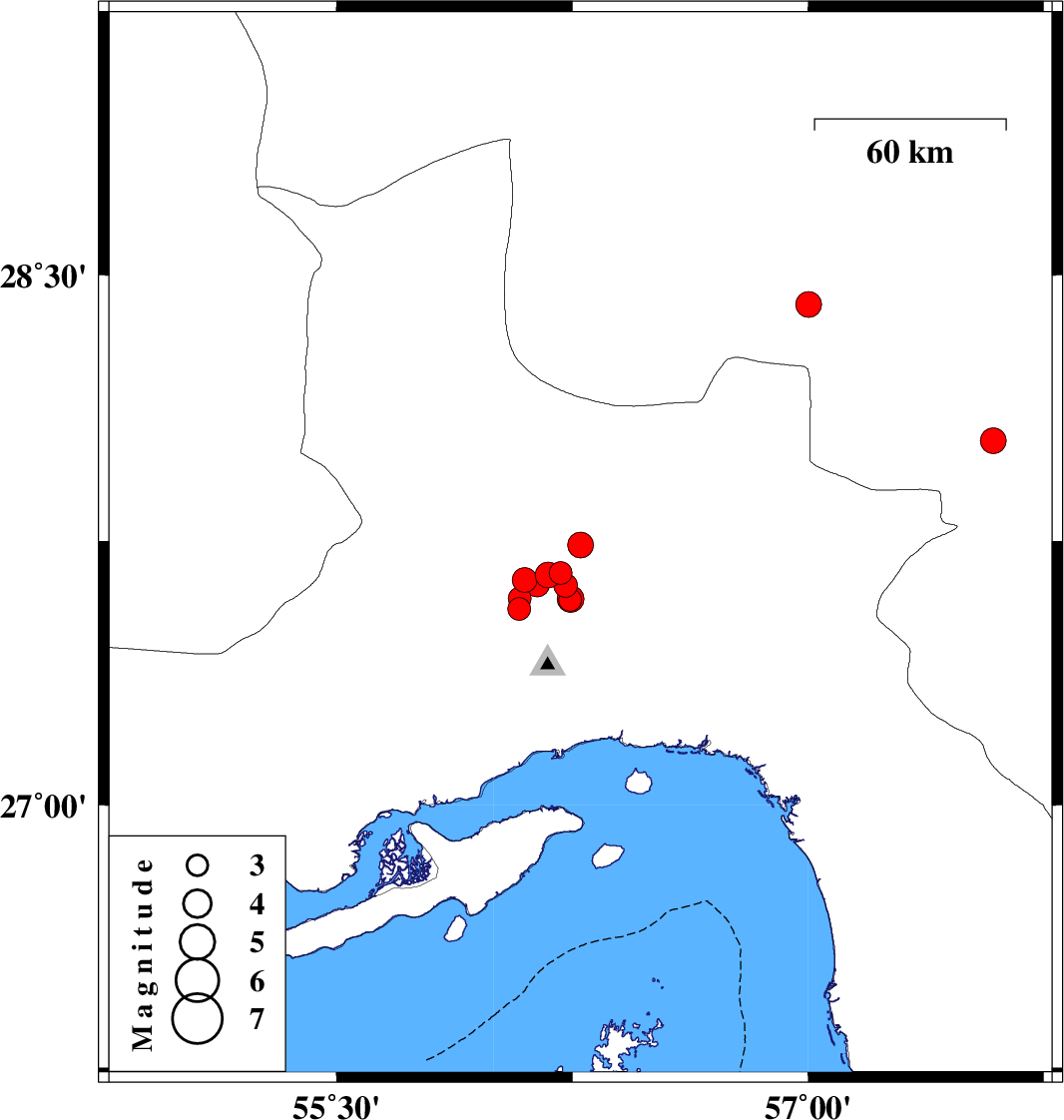 | 2021/11/30 | 22:44:37.2 | 02:14:37.2 | 27.583 | 56.243 | 12 | ML3.3 | Hormozgan Province, 45 km North of Bandar-e abbas | ||