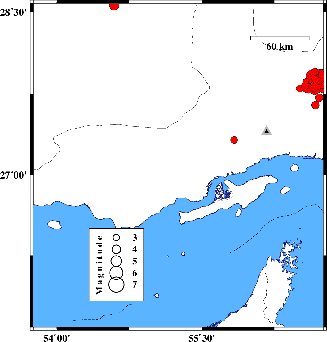 | 2021/11/15 | 01:41:27.3 | 05:11:27.3 | 27.555 | 55.938 | 12 | ML3.4 | Hormozgan Province, 53 km North-West of Bandar-e abbas | ||