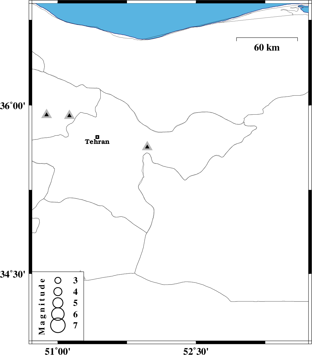 | 2021/12/13 | 03:39:33.1 | 07:09:33.1 | 35.395 | 52.22 | 12 | ML3.3 | Semnan Province, 22 km North-West of Garmsar |