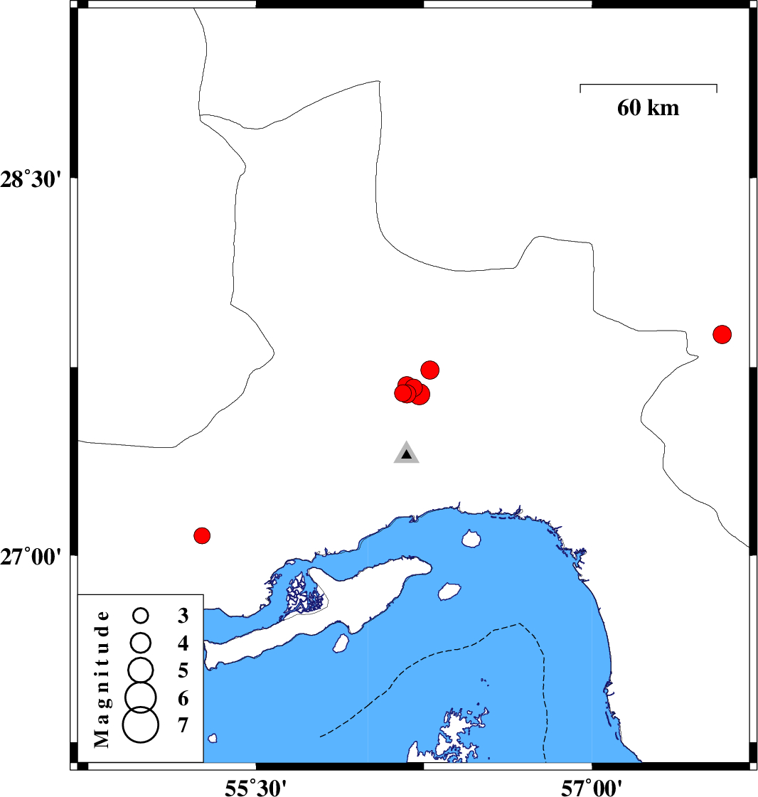 | 2021/12/06 | 08:04:20.5 | 11:34:20.5 | 27.654 | 56.173 | 11 | ML3.6 | Hormozgan Province, 53 km North-West of Bandar-e abbas |