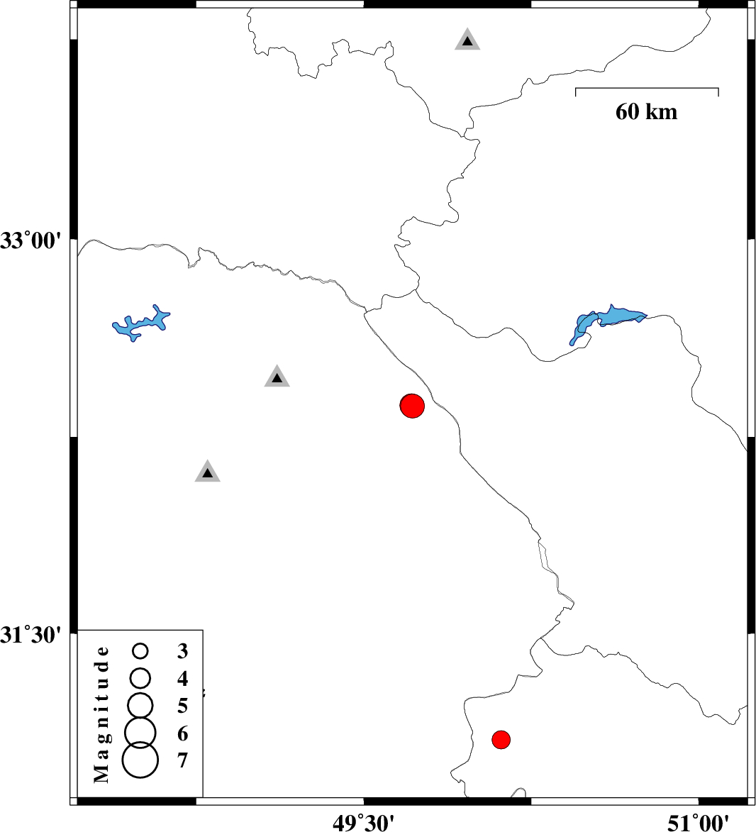 | 2021/12/15 | 08:21:10.3 | 11:51:10.3 | 32.368 | 49.718 | 12 | ML4.8 | Khoozestan Province, 39 km -West of Chelgard | ||
