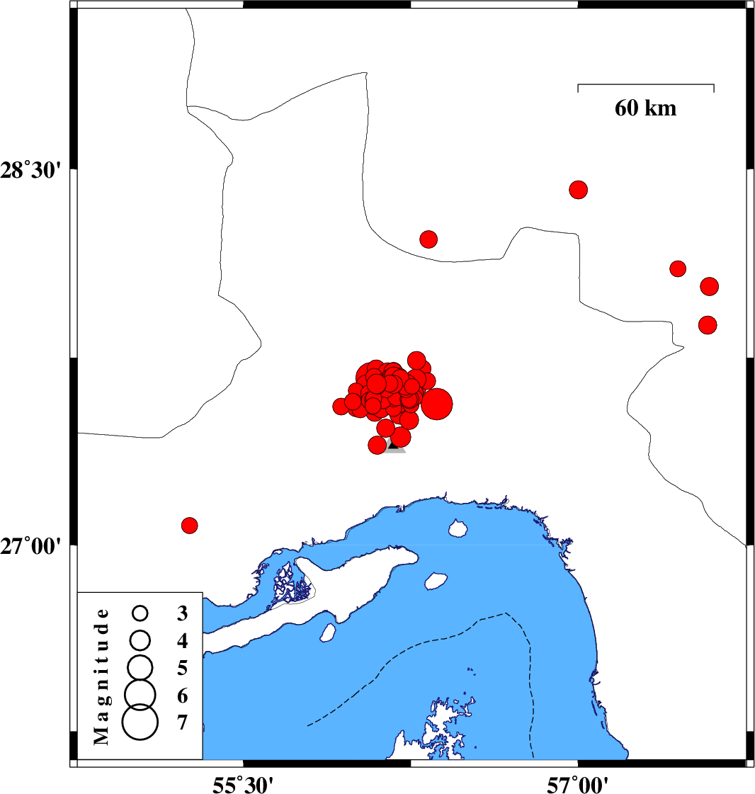 | 2021/11/15 | 02:53:42.6 | 06:23:42.6 | 27.599 | 56.104 | 10 | ML3.6 | Hormozgan Province, 49 km North-West of Bandar-e abbas | ||