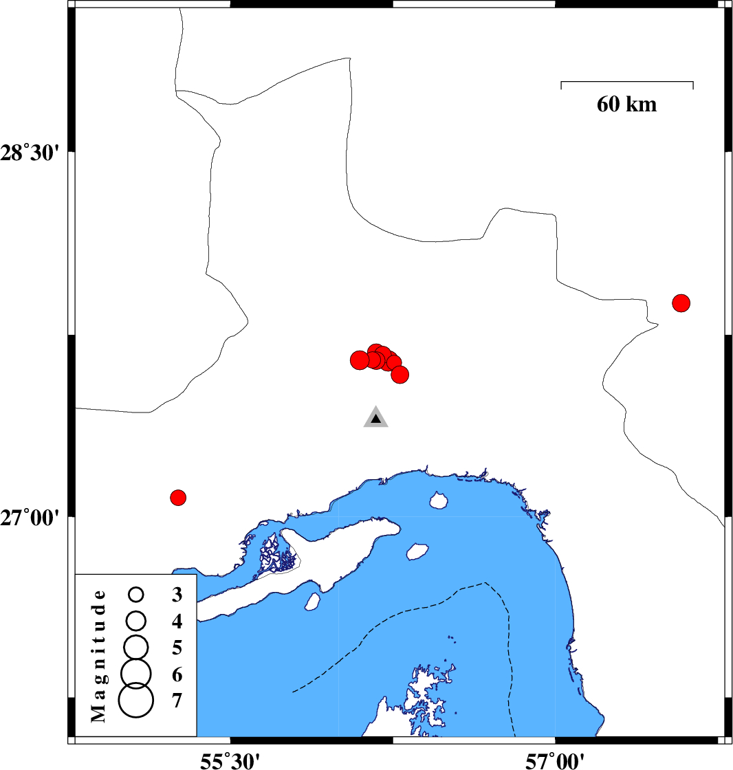 | 2021/12/15 | 00:55:12.7 | 04:25:12.7 | 27.586 | 56.282 | 12 | ML3.7 | Hormozgan Province, 45 km North of Bandar-e abbas | ||