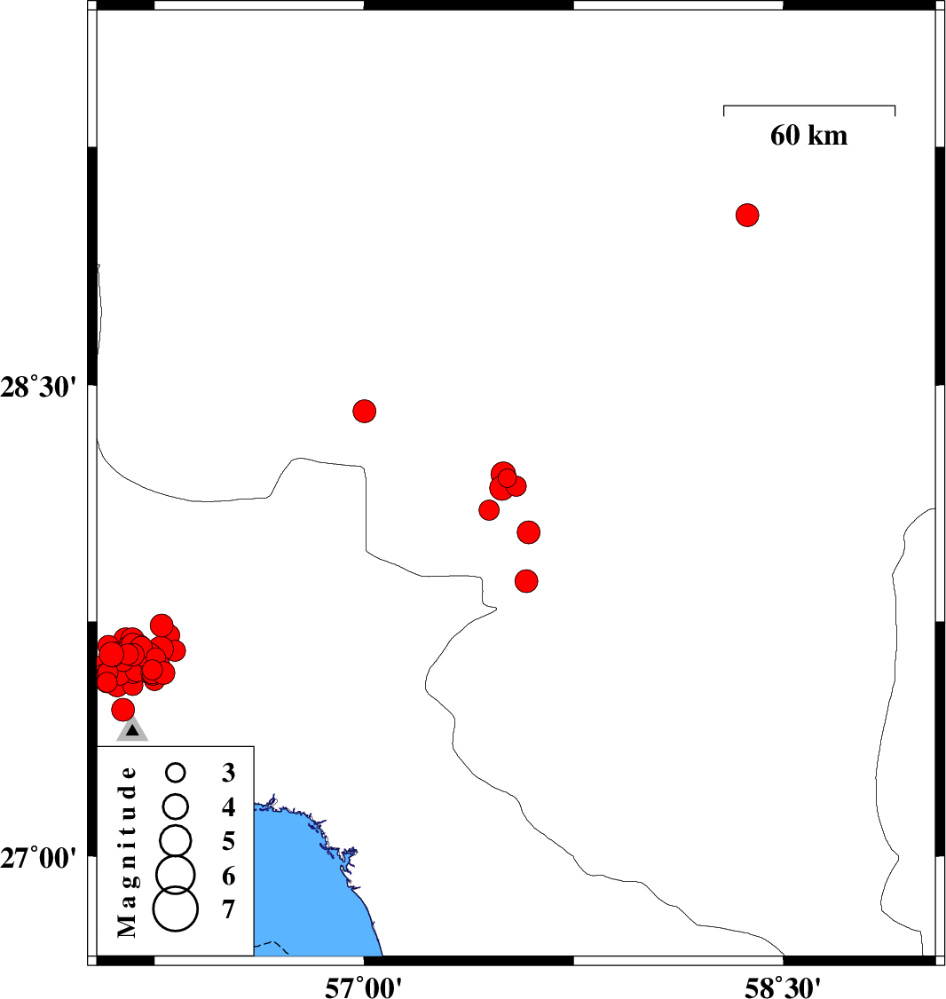 | 2021/11/16 | 05:12:13.6 | 08:42:13.6 | 27.655 | 56.115 | 10 | ML4.1 | Hormozgan Province, 55 km North-West of Bandar-e abbas |