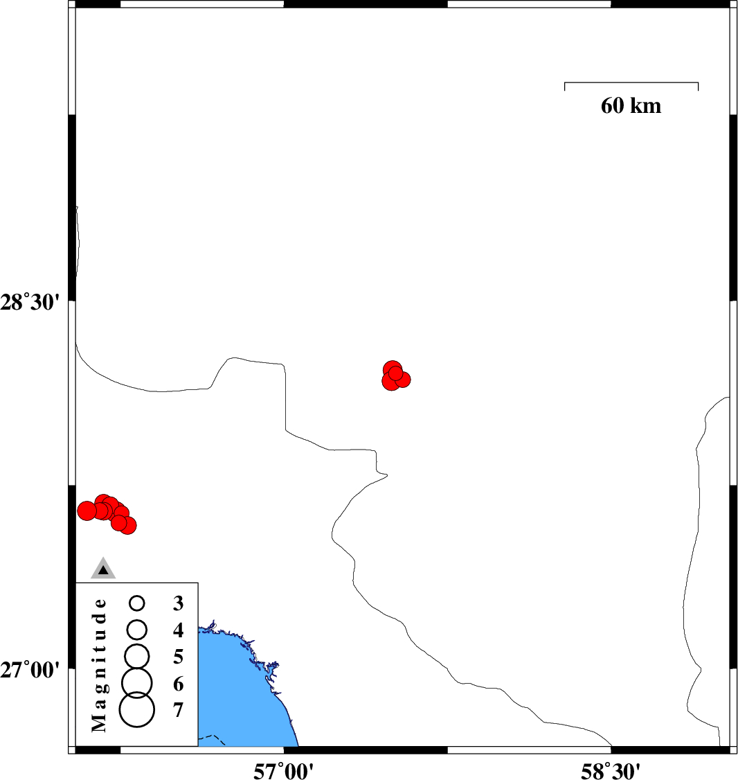 | 2021/12/16 | 19:16:35.0 | 22:46:35.0 | 28.218 | 57.498 | 12 | ML3.9 | Kerman Province, 35 km North-West of Kahnuj | ||