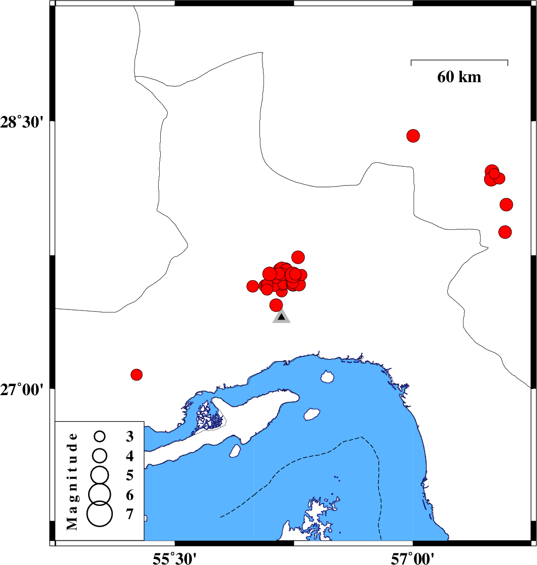 | 2021/11/21 | 05:55:38.2 | 09:25:38.2 | 27.579 | 56.068 | 8 | ML3.5 | Hormozgan Province, 49 km North-West of Bandar-e abbas |