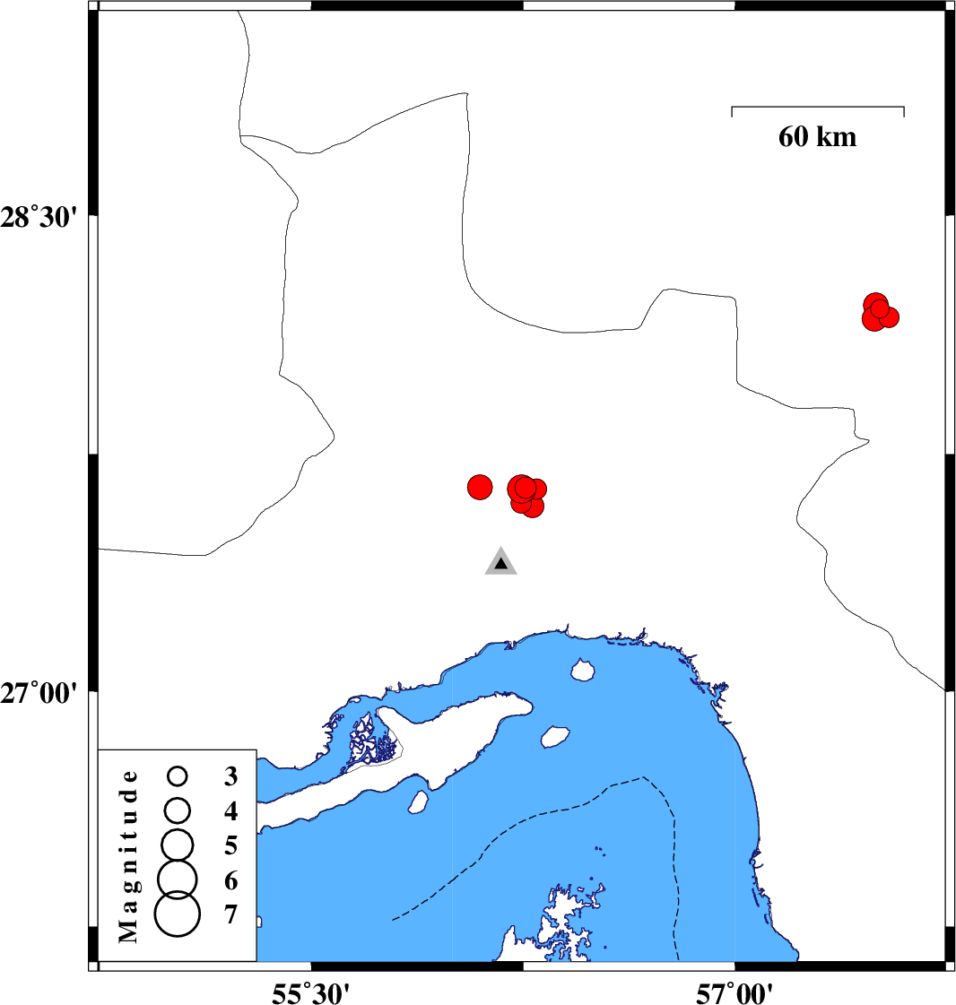 | 2021/12/15 | 00:55:12.7 | 04:25:12.7 | 27.586 | 56.282 | 12 | ML3.7 | Hormozgan Province, 45 km North of Bandar-e abbas | ||
